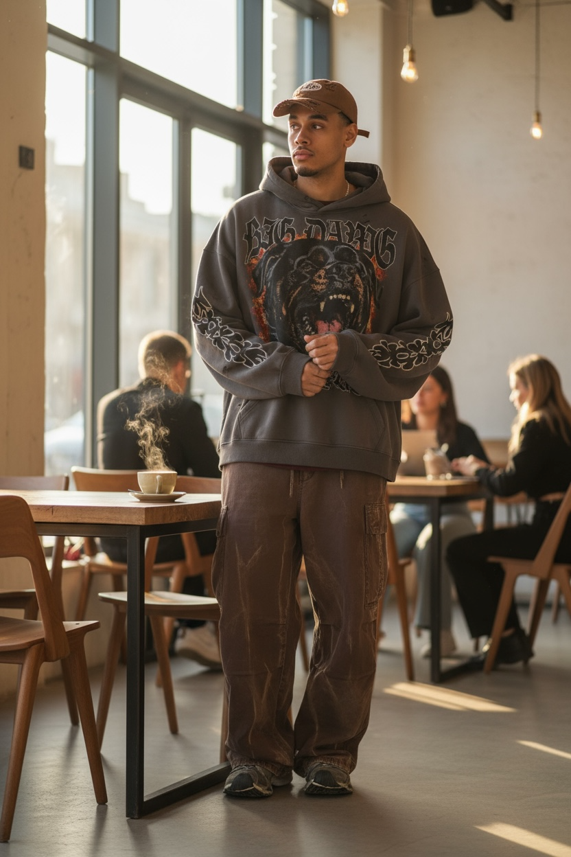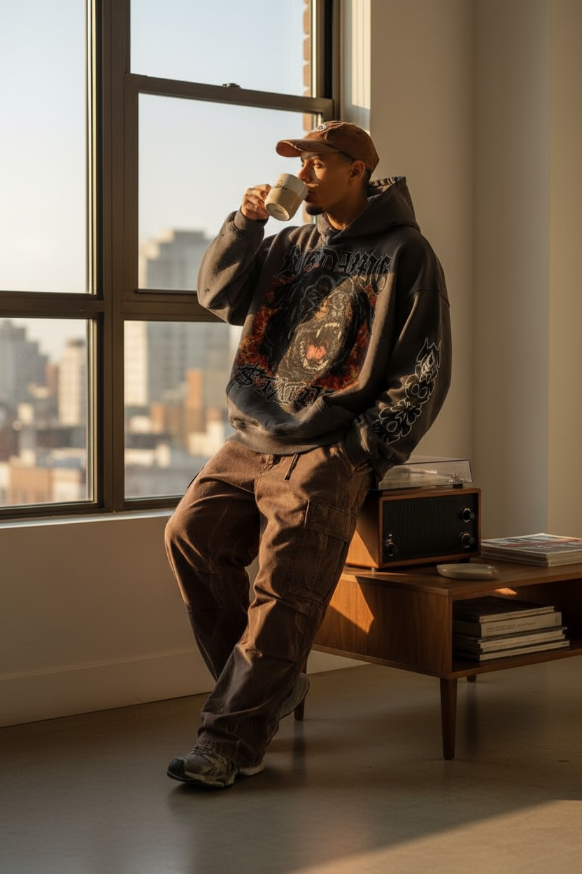 This 100% cotton hoodie pairs a sun-faded wash with distressed detailing to capture authentic vintage streetwear energy. Oversized proportions and grunge-inspired touches make it ideal for layering or wearing as a bold statement piece, blending comfort, casual ease, and standout appeal in modern everyday fashion.
